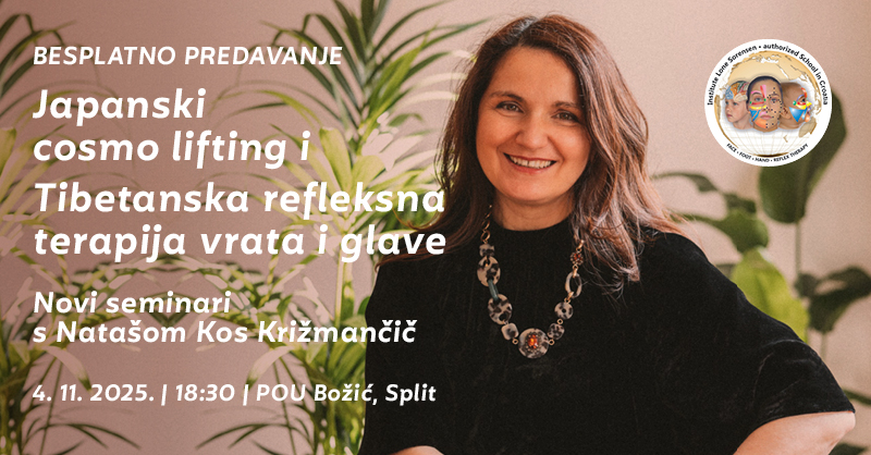 Pozivamo Vas na besplatno predavanje uživo u POU Božić, gdje će Nataša Kos Križmančič predstaviti dvije iznimne metode i mogućnosti stjecanja međunarodno priznate diplome: •Japanski cosmo lifting – prirodna metoda pomlađivanja koja potiče regeneraciju kože i unutarnju vitalnost. •Tibetanska refleksna terapija vrata i glave –...